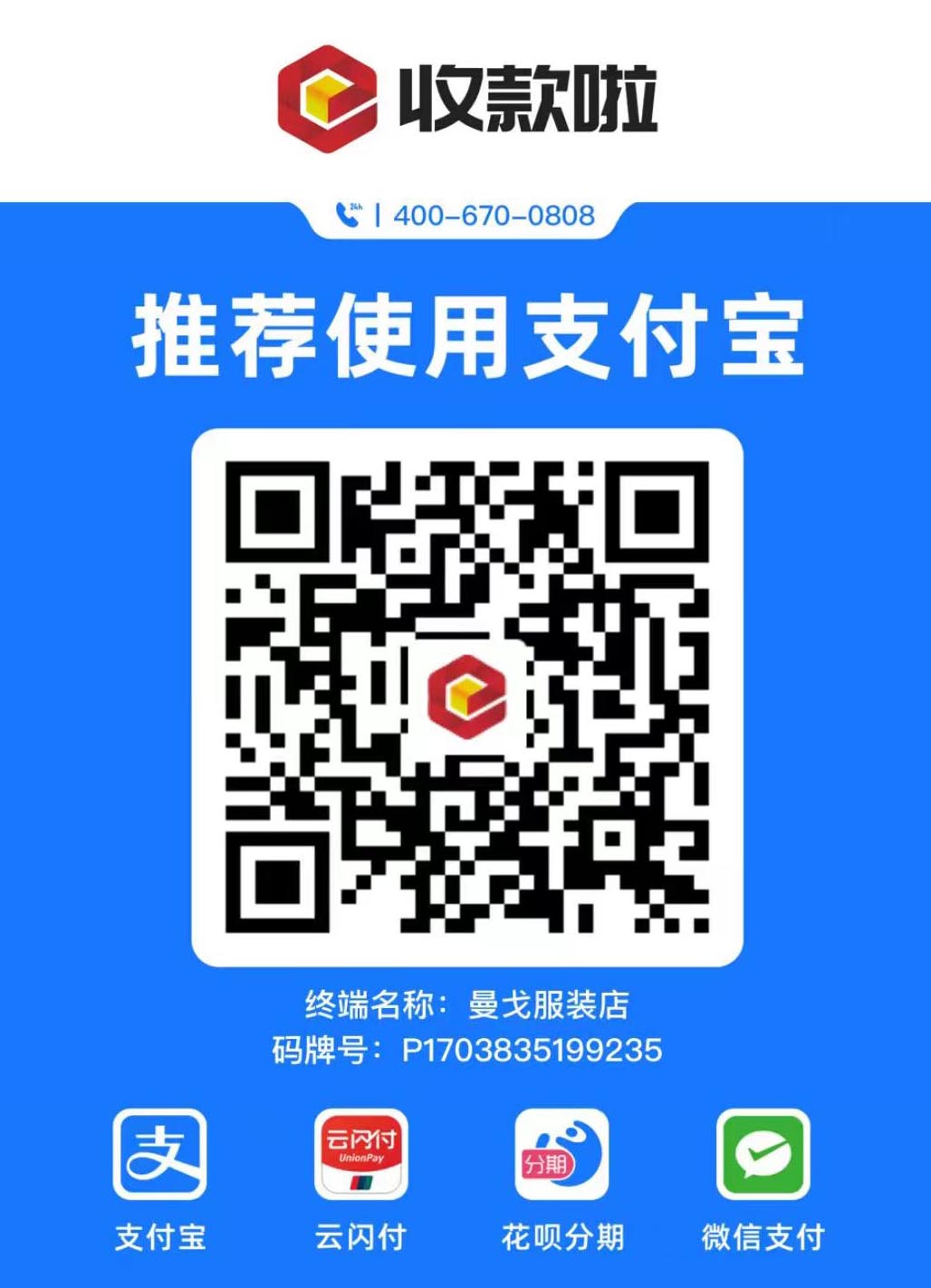 下面蓝色二维码支持“支付宝”、“云闪付”、“花呗分期”、“微信支付”。